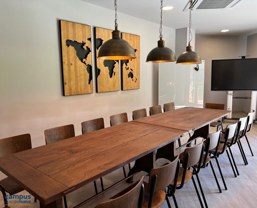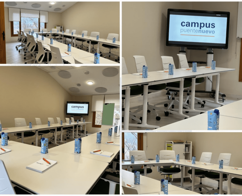 Campus Puente Nuevo ofrece 3 auditorios, 1 mini auditorio y 30 salas repartidas entre los edificios América, África, Europa, Asia, Administración y business center, Centro wellness y Centro de innovación y creatividad. Nuestras salas y auditorios son espacios flexibles que se adaptan a las necesidades de cada cliente y ocasión. Además, están equipados con la más avanzada tecnología para desarrollar eventos, encuentros, reuniones de trabajo y formación de empresa.