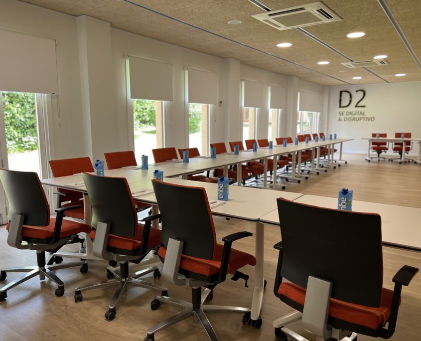 Sala polivalente con diferentes espacios enfocada a grupos de trabajo